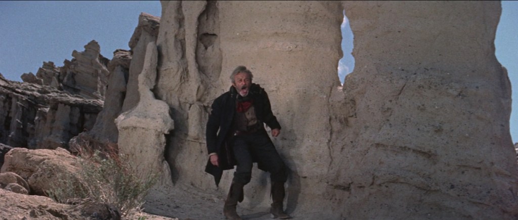 No, not remotely. At the twenty-minute mark, the film crawls into a cobwebby corner and goes utterly mad. Anthony Mann’s adoration of Shakespearean tragedy seizes the reins, and results in the Western with the closest spiritual ties to the Bard’s most neurotic dramas. Mann approached overt Shakespearean elements in The Man From Laramie and tried for years to make a Western adaptation of King Lear called “The King,” but this is the closest he came to putting the spirit of the Elizabethan stage onto the sagebrush screen.