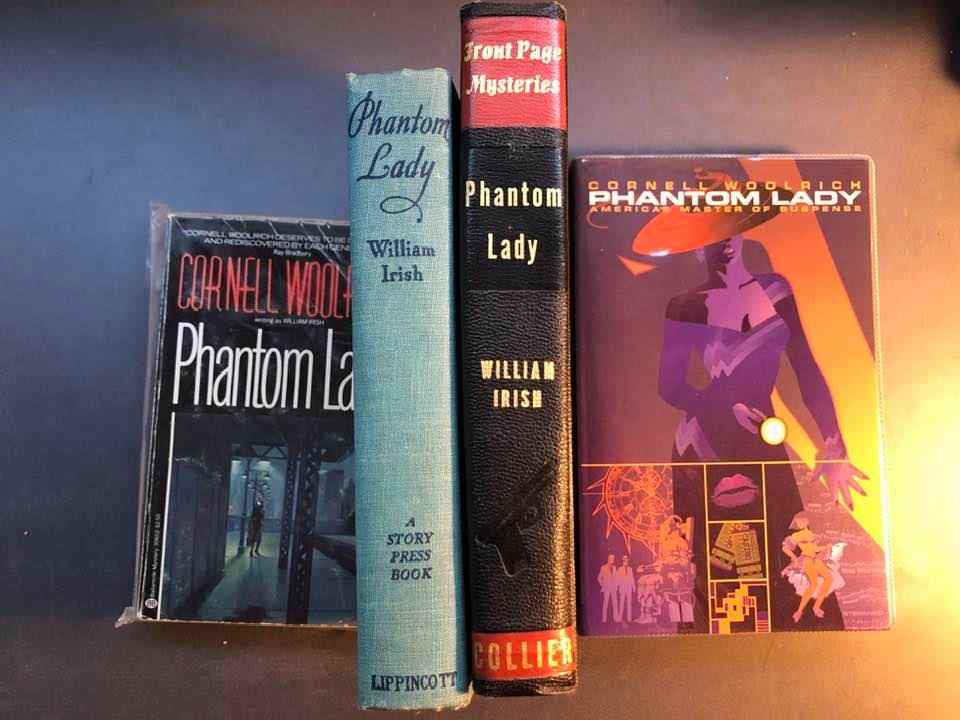 Phantom Lady is currently streaming on Criterion Channel as part of a Robert Siodmak noir trilogy with The Killers (1946) and Criss Cross (1948). Phantom Lady is not as accomplished as the two later films, but it was the one I wanted to rewatch first, and not just because of its prime position in noir history. Cornell Woolrich is the big draw for me, since he’s one of my favorite twentieth-century writers. I’ve made a hobby out of collecting editions of his work. Here are my different copies of Phantom Lady, including a first edition from 1942 (missing the dust jacket) under Woolrich’s pseudonym William Irish, which he used for several novels and story collections during the ‘40s.